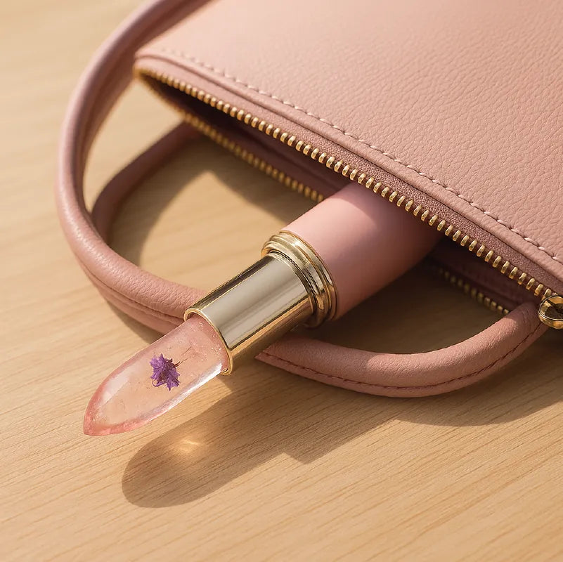 💄 Labial gel transparente con flor real — Se adapta a tu pH para crear tu color perfecto.