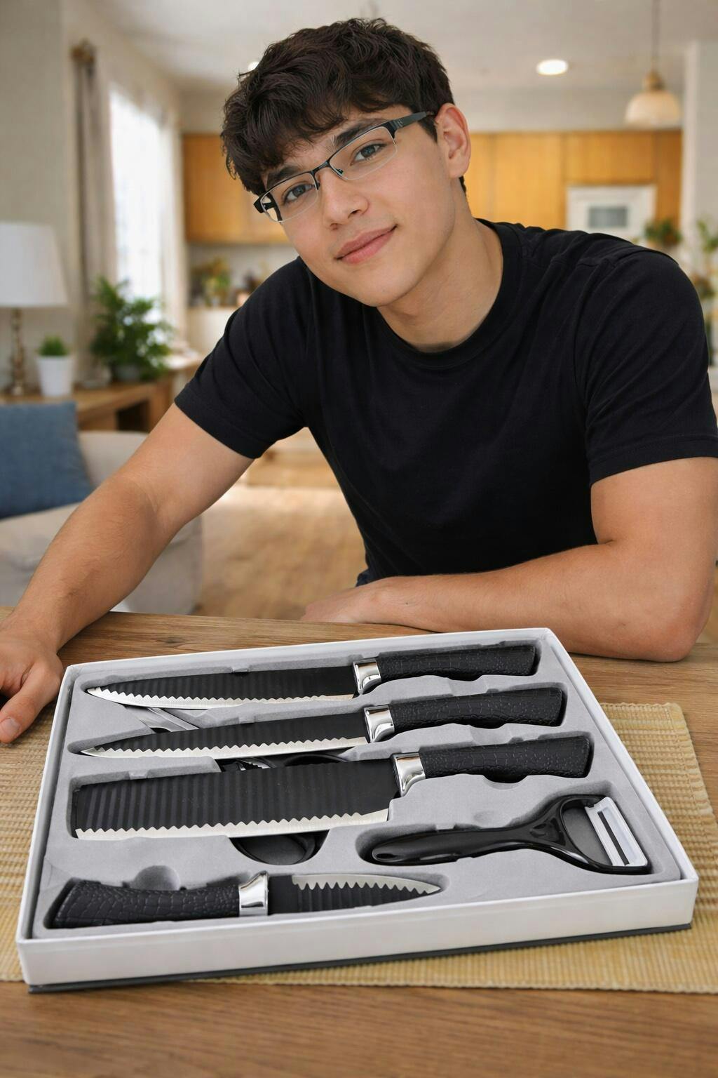 ⚡ No te falta habilidad: te sobran cuchillos basura. El Set de Cuchillos corta sin esfuerzo, sin peleas y sin frustración desde el primer uso.